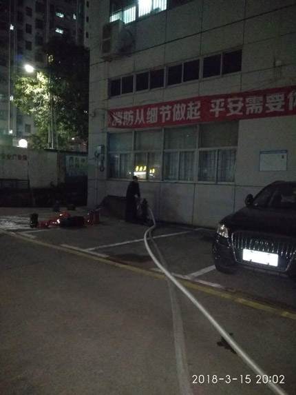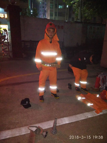 2018年3月15日晚20:00时应客户要求我司驻金博龙保安分队开始了消防演练活动。我司保安义务消防员在5分钟内完成了所有训练科目,得到了客户一致好评。